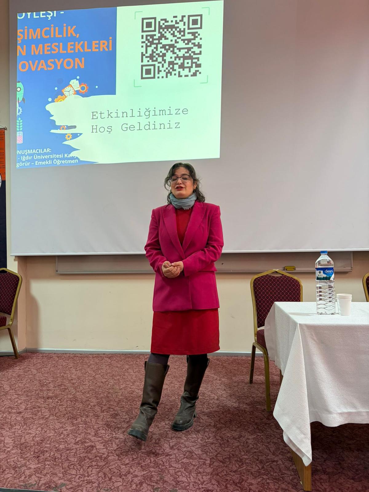 Etkinliğimiz 12.12.2025 tarihinde gerçekleşmiş olup etkinliğe yirmi kişinin üzerinde öğrencimiz ve personelimiz katılım sağlamıştır. Etkinliğe Iğdır Üniversitesinden Kariyer Merkezi yöneticisi Öğr. Gör. Sayın Hakan Güngör 'ün "Geleceğin meslekleri ve inovasyon" başlıklı konuşmayı yapmıştır.Ayrıca etkinlikte, Ardahan ilinde etkin girişimcilik faaliyetlerinde bulunmuş emekli öğretmen Sayın Nesrin Arslangörür'ün, kendi girişimcilik deneyimlerini paylaştığı bir konuşma gerçekleştirildi. Etkinlik İnsani Bilimler ve Edebiyat fakültesi Nazım Hikmet konferans salonunda gerçekleştirildi.Etkinlikte konuşmacı hocalarımıza teşekkür belgesi sunuldu. Etkinlik sonrası memnuniyet anketi değerlendirildi. Memnuniyet anketine bakılarak elde edilen verilerden bu ve benzeri etkinliklerin tekrardan gerçekleşmesi mümkündür.